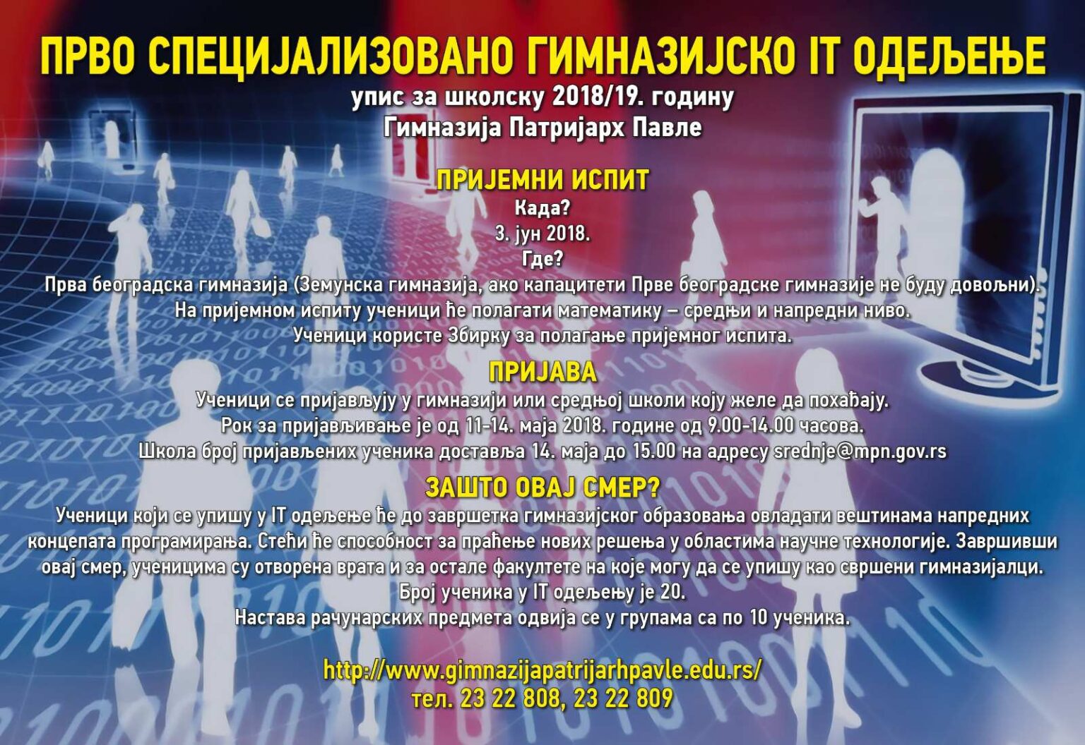 За упис у одељење за ученике са посебним способностима за рачунарство и информатику