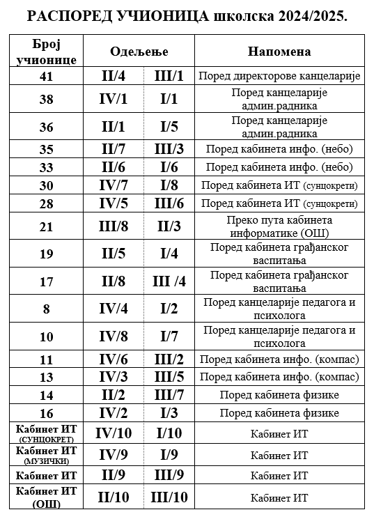 Распоред учионица